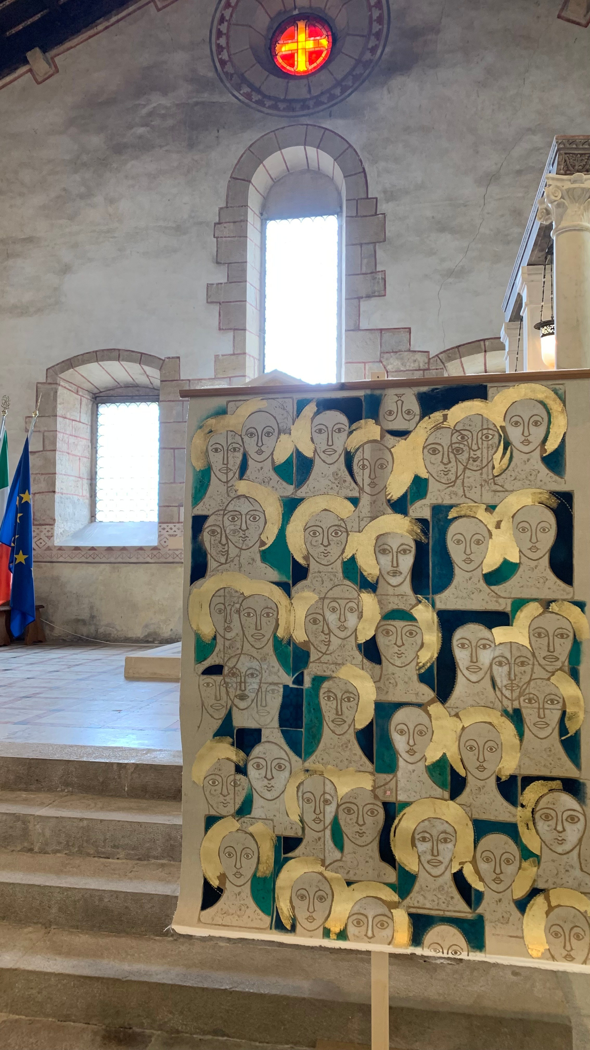 “HOLY FACES” 117 cm x 160 cm. 2023Abbey of Follina, Ars in Tempore 2025 Photo by Carmelo Polesel.