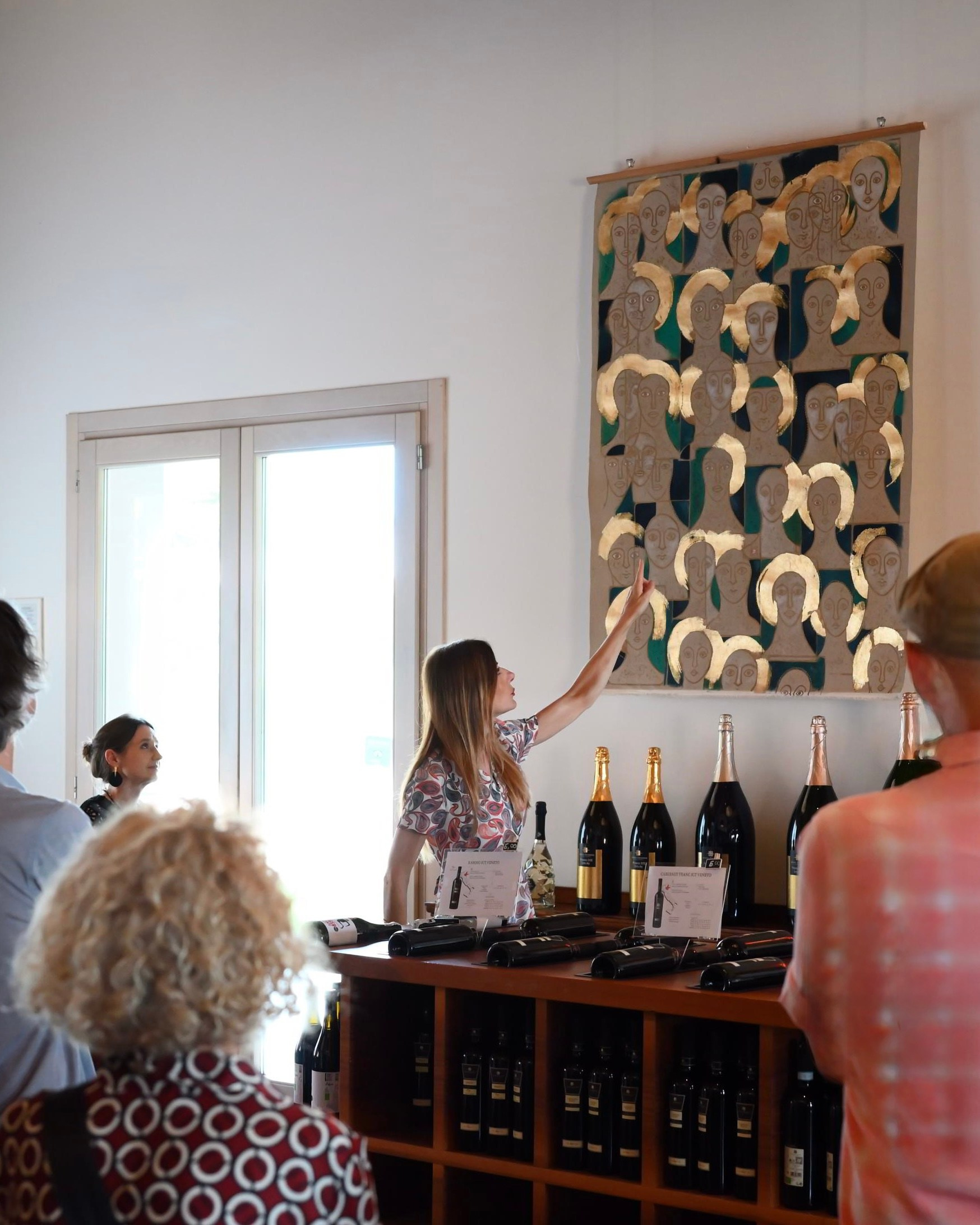 “HOLY FACES” 117 cm x 160 cm. 2023 art curator Roberta Gubitosi. 47 Anno Domini Wineyard. 2025 Photo by Carmelo Polesel.