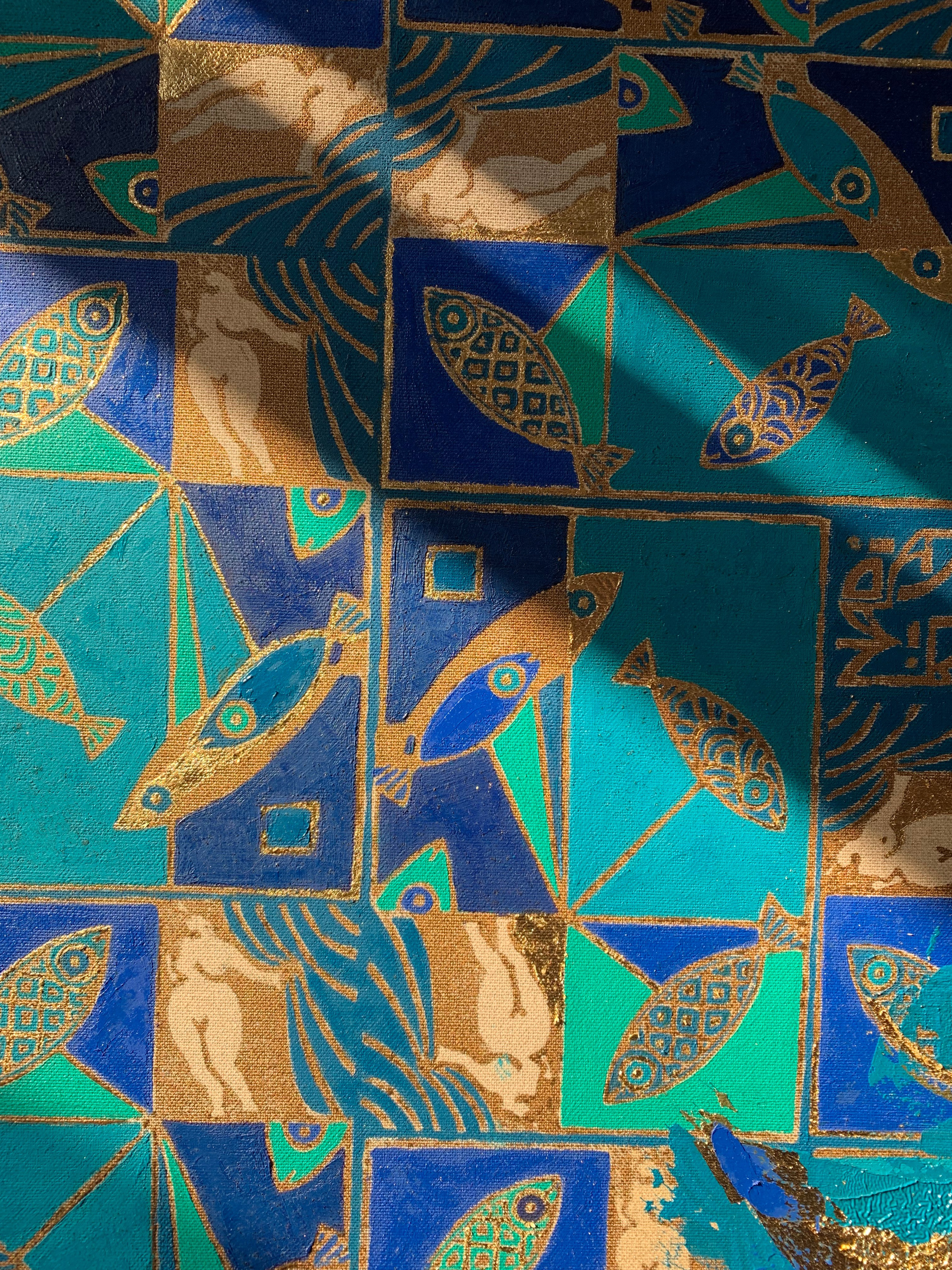 «Marina» Tecnica mista, stampa su tela, olio su tela 70×70 cm